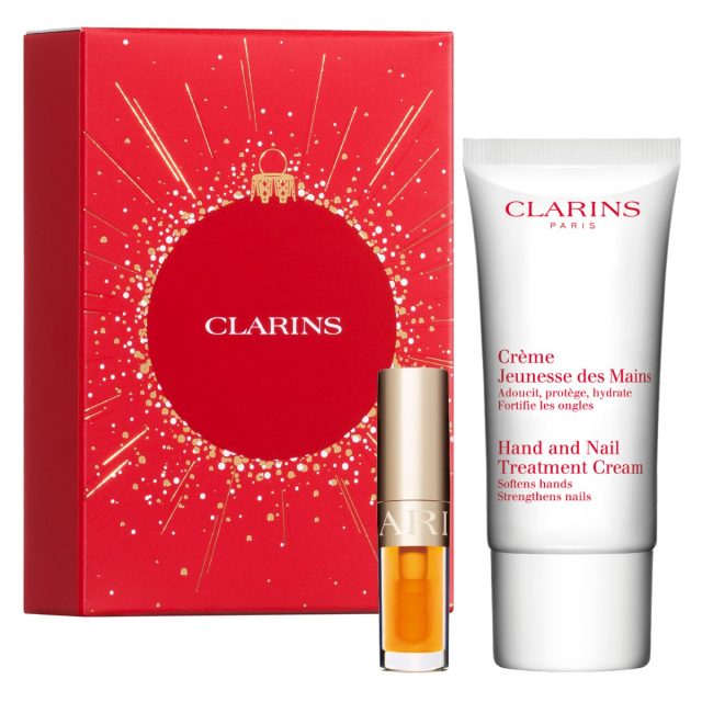 冬のケアに欠かせない、ハンドクリーム&ミニリップオイルをセットにしたコフレ。さらりとした使い心地で指先まで高い保湿効果を発揮するハンドクリームは、たっぷり使える現品サイズです。またクリアな発色でツヤと輝きをプラスするリップオイルは、パーティバッグやポーチに入れてもち運びしやすいミニサイズ。ホリデー感たっぷりのレッド×ゴールドのボックスにセットされ、プチギフトにもぴったりです。<br><セット内容>