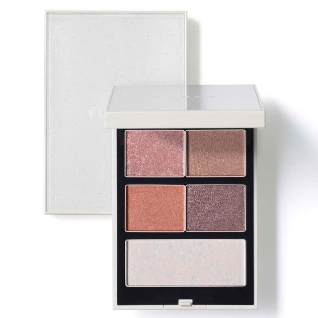 異なる4質感のアイカラーとハイライター1色をセットにした光のレイヤードを楽しめるパレットがホリデー限定で登場。シアーな発色のアイカラーは、きらびやかなグリッターやメタリックなど、重ねるごとに繊細な光感をまとえます。ハイライターは、一ハケでヴェールをかけたような自然な立体感を演出。