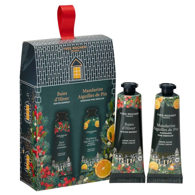 ホリデー限定の香りのハンドクリームをセットにしたコフレが登場。<ウィンター・ベリー>は甘みのあるバニラやベリー、柔らかな花の香りが心地よいムスク系、<マンダリン&パインニードル>はフレッシュな柑橘、シャープな松の葉、温かみのあるウッディ系。とろけるようになじんで浸透し、手肌をしっとり潤します。