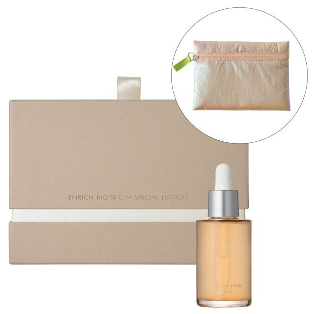 肌本来の美肌菌の働きに着目し、<プレバイオティクス成分>の効果で肌環境を整える<エンリッチバイオセラム>がビックサイズで登場! 内側から照らすような肌の輝きをイメージしたオーロラカラーのクッションポーチがついた特別感のあるセットは、ギフトにはもちろん、自分へのご褒美にもおすすめです。11月5日予約スタート。