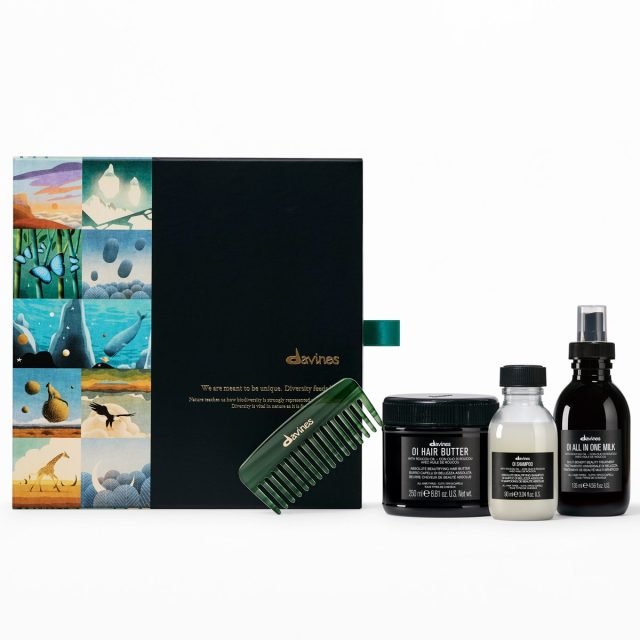 髪内部までしっかり補修し、パサつきを抑え、しっとりとしたツヤ髪に導くダヴィネスの人気No.1「オイ」シリーズのコフレ。スペシャルケアに最適なヘアマスクと、デイリーケアの質を高めるスプレータイプのヘアミルクのそれぞれ現品をセットに。さらに豊かな泡で優しく洗い上げるシャンプー、ヘアマスクの効果を引き出すコームが自然界の豊かな多様性を表現したボックスにイン。ほんのり甘くスパイシーな香りに包まれる、至福のヘアケアを体感して。