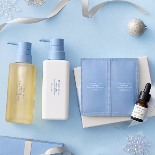 頭皮環境を健やかに保つ<乳酸菌>配合のシャンプーと、うねりやパサつきを防ぎ、密度の高いしなやかな髪へと導くヘアトリートメントの現品、旅行やジムに便利な1回分のシャンプー&トリートメントのペアパウチ、髪に自然なツヤと潤いを与え、軽やかに仕上げるヘアオイルのミニボトルをセットに。冬の乾燥で傷んだ髪と頭皮を潤いで労り、毛先までしっとりまとまるツヤ髪へと導きます。心地よく広がるハーブの香りでバスタイムを楽しんで。