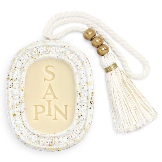 楕円形のケースの中に香りのワックスを閉じ込めた「香りのオーバル」に、冬の象徴もみの木をイメージした<サパン>が新登場。煌びやかなゴールドを散りばめたホワイトセラミック製のケースは、職人による手作りです。オブジェとして飾れば、シベリア松やバルサムモミ、シダーに、モスのアクセントを加えた深いウッディな香りが心地よく広がります。