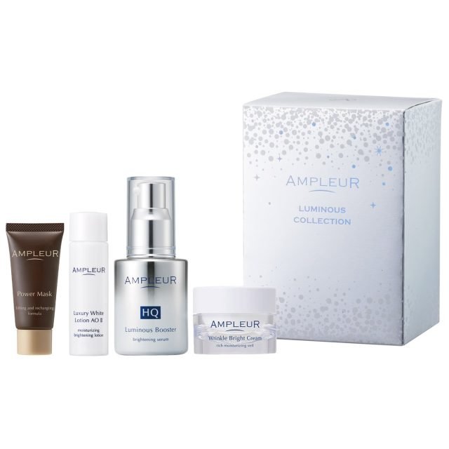 アンプルールの人気&最新アイテムをまとめて試せるブライトニングコフレが登場。ハイドロキノンとレチノールが肌の明るさとハリを引き出す導入美容液の現品に、透明感と保湿感で満たすリピート率No.1の高浸透ホワイトローション、シワとシミに働きかける薬用美白クリーム、睡眠中にハリと輝きを高める新製品のナイトマスクがセットに。心地よい使用感と確かな機能性を体感あれ!