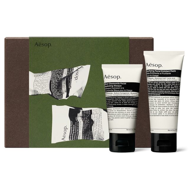 イベント続きで疲れた肌を癒すスキンケアコフレ。「ピュリファイング フェイシャルエクスフォリアント」は、古い角質をやさしく取り除き、柔肌に整えるフェイススクラブ。「ブルーカモミール フェイシャル ハイドレーティング マスク」は、たっぷりの潤いで肌をリフレッシュさせる軽いつけ心地の保湿ジェル。ダブル使いで、みずみずしく健やかな肌へ。10月中旬予約開始、10月20日先行発売。