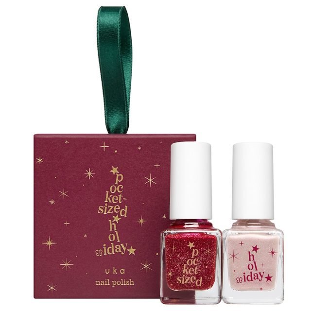 ツリーに見立てた<pocket-sized holiday>のロゴをまとった、ミニサイズのネイルポリッシュをセットにして、赤とグリーンを基調にしたオーナメントボックスにイン。微細なゴールドラメを散りばめた艶やかで情熱的な赤のネイルカラー「ガーネット」と、偏光パールが上品に輝く淡いピンクベージュのカラーベースコート「オパール」はどちらもフランキンセンス、バニラ、オレンジ、シナモンをブレンドした、甘く温かみのある香りです。