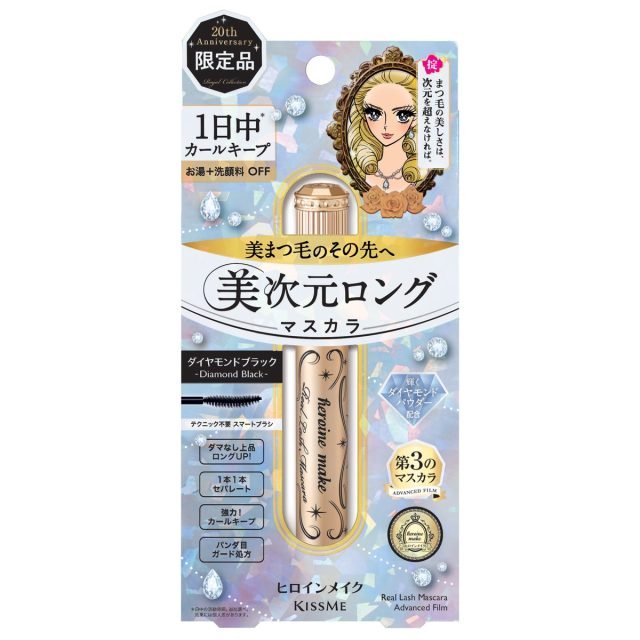 マスカラ液がまつげ1本1本に密着し、ダマのない繊細なセパレートロングまつげに仕上げる人気アイテムに、ダイヤモンドのように多彩に輝く「20 ダイヤモンドブラック」が登場。7色に輝くホログラム&高輝度の純銀コートパール&ダイヤモンドパウダー配合により、見る角度によって異なる輝きを演出。涙、汗、皮脂、こすれに強く、長時間にじまずカールキープするのに、お湯&洗顔料で簡単にオフがかないます。