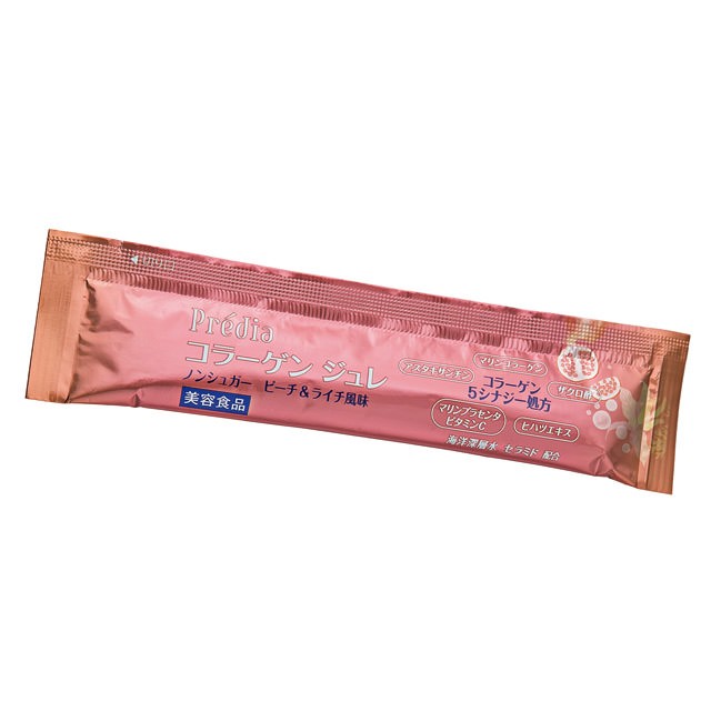「コラーゲン ジュレ」がパワーアップ。コラーゲンを作り、消化吸収を高め、守る、などの効果をもつ美容成分を配合。さらに、コラーゲンを素早く全身に届ける〝ヒハツエキス〟を新配合。爽やかな酸味と甘みのあるピーチ&ライチ風味で食べやすい♪