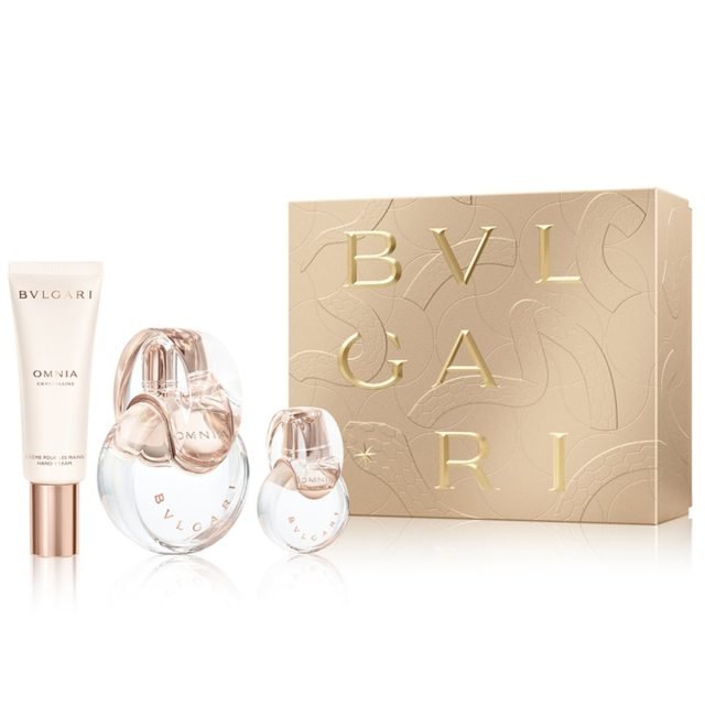 蓮の花の水のような透明感からインスピレーションを得たシグネチャーを、ホワイトピオニーの軽やかな芳香さで昇華したフレグランス「オムニア クリスタリン オードトワレ」の現品とミニサイズに加え、同じ香りのハンドクリームの現品をセットに。梨のシャキっとしたみずみずしい香り、バンブーの植物性のフレッシュな香りを経て、クリスタルムスクのアコードで柔らかさを添えた温かみのあるバルサウッドで終わる繊細さ。ハンドクリームは、きめ細かくクリーミーなテクスチャー。ほのかな香りのヴェールで手肌を優しく包む、贅沢な使い心地です。