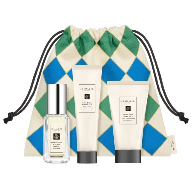 使い勝手のいいミニサイズを詰め込んだコフレが登場。甘さとスパイシーさが調和するホリデー限定の「サンダルウッド & スパイスド アプリコット コロン」に、すがすがしい香りと潤いで手肌を包む「ライム バジル & マンダリン ハンド クリーム」、爽やかな香りとともに肌を優しく洗い上げる「ウッド セージ & シー ソルト ボディ & ハンド ウォッシュ」がセットに。初めてジョー マローン ロンドンを試す方にもおすすめのセットです。オンライン限定。
