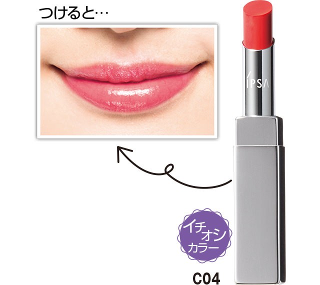 Cはクリーミー、Sはシアー、Mはマット。肌色になじむスキンベージュパール配合。C04はストロベリーレッド、S04はフューシャピンク。