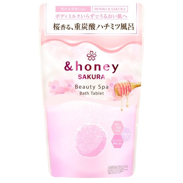 毎年好評のサクラ限定デザインシリーズ。2025年は、甘いチェリーブロッサムハニーに、すっきりとしたヒノキが加わり、よりリラックスできる香りにパワーアップ。そんな香りを楽しめる重炭酸入浴剤は、ハチミツが溶け込んだボディミルク成分や高麗人参などを配合。乾燥しがちな肌を守りつつ、しっとりすべすべな状態へと導きます。1錠売り(¥308)もあり。
