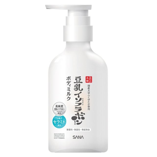 独自開発の高純度豆乳イソフラボンと豆乳発酵液をWで配合したボディミルク。さらに、5種のセラミドと尿素の保湿成分や、グリチルリチン酸2Kとアラントインの整肌成分により、全身すべすべとしたもっちり肌へ。すぐ服を着られる程、ベタつきはいっさいなし!