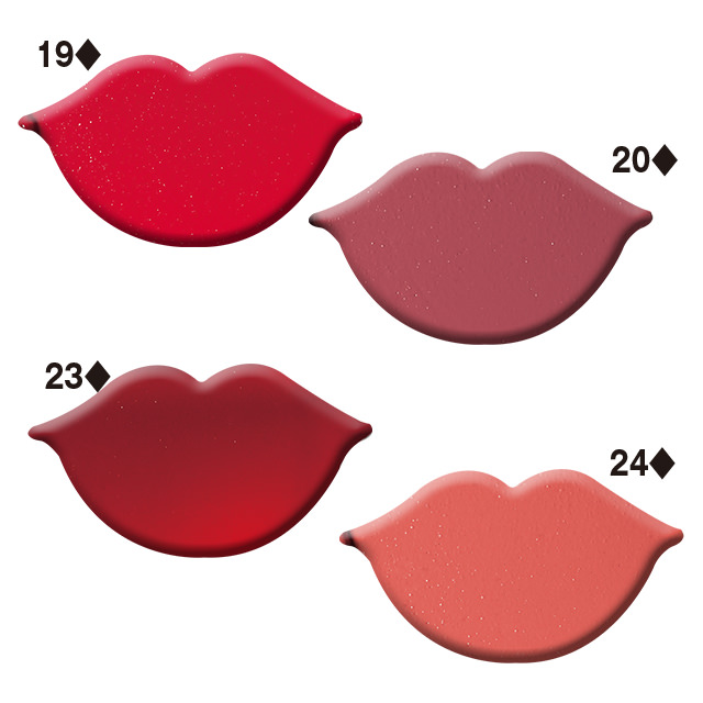 ひと塗りで美しく発色。透けるようなふんわりマット仕上がり。02はフェミニンなベージュピンク。19は明るくあでやかな青みピンク。