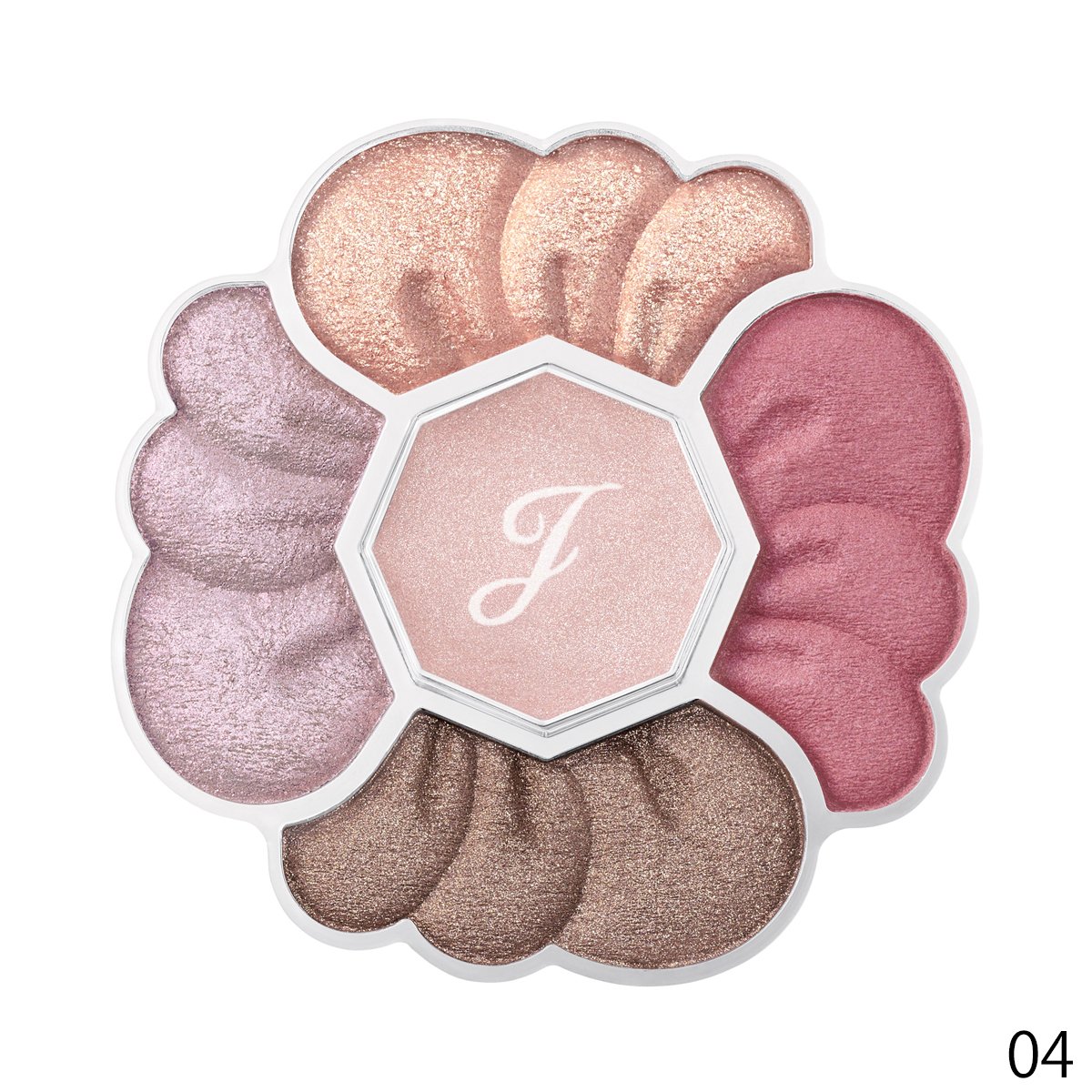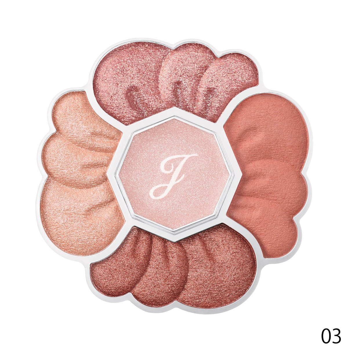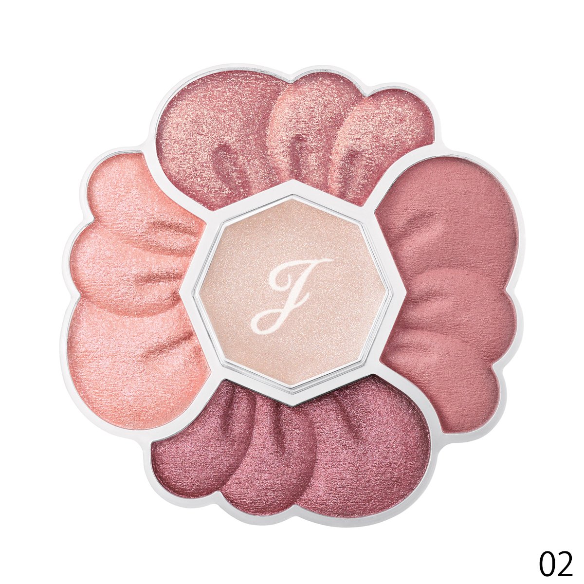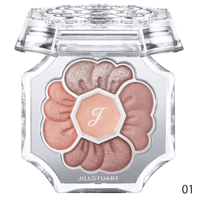 多彩な花びらが重なるように異なる質感と色で目元に立体感を演出。01はダリアのように華やかなピンク~ブラウン系パレット。