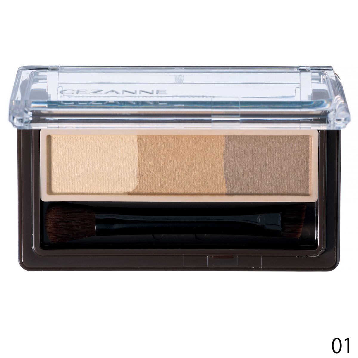 左端の淡い色はノーズシャドウにも。3色をブレンドして好みの色が簡単に作れ、ムラなく描ける。ダブルエンドのブラシつき。