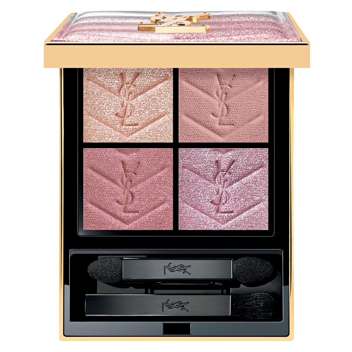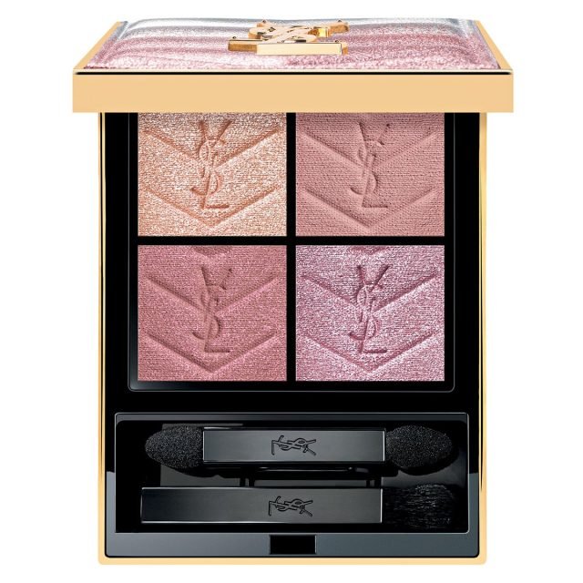 シルバーのクールさとローズピンクの輝きが溶け合う“LOVE”コレクション。モーヴピンクなどがセットされたアイシャドウパレット。