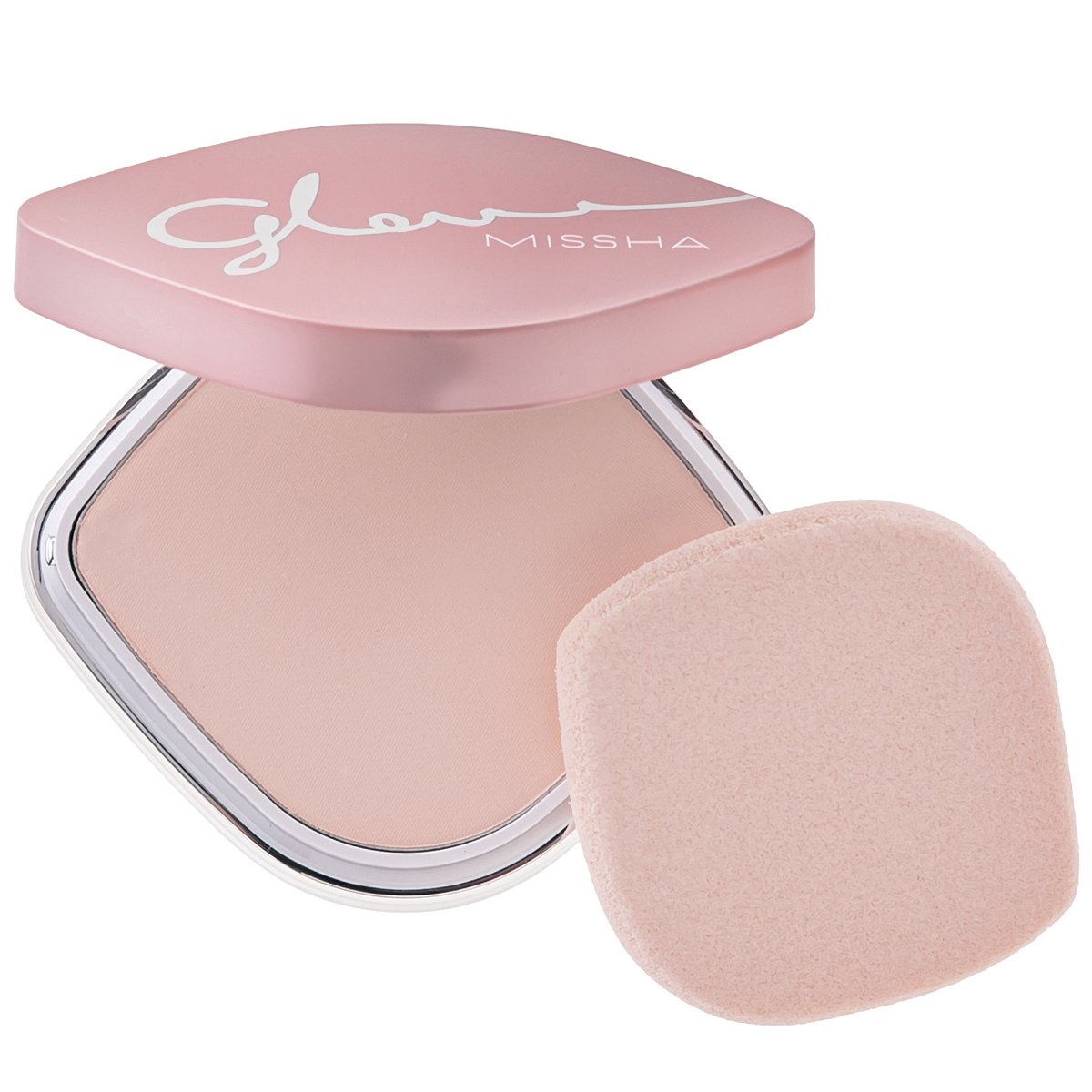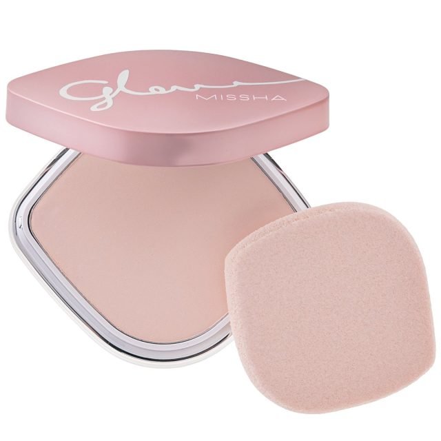 皮脂吸着パウダーがテカりを抑えて美しいシルクグロウ肌をキープする、ベージュカラーのUVパウダー。ヒアルロン酸やコラーゲン、セラミドが贅沢に配合され、肌表面はサラリとしていながら、内側はしっとりとした潤いを実感。パフは、小鼻などの細部にも塗布しやすい。