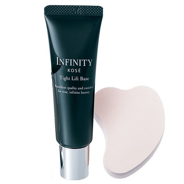 フィット性に優れたカーブが肌を引き上げるスポンジや、体温に近い温度になると固まり、形状記憶する〝タイトリフトゲル〟配合の化粧下地で、肌をぐぐっと引き締める。
