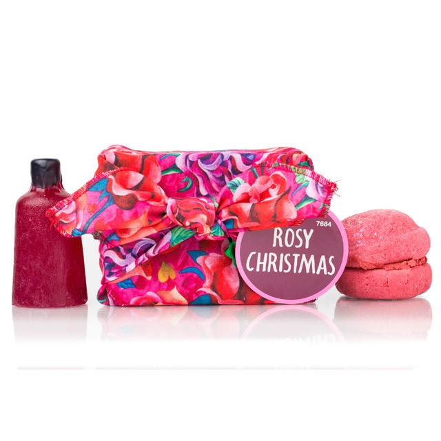 優雅なローズの香りが広がるアイテムがセットされたキット。バブルバスを楽しめるバブルバーの「マカロンバブルバーローズジャム」と、柔らかな肌触りで全身を洗い上げる「ローズジャムネイキッドシャワージェル」。ペットボトルをリサイクルして作られた風呂敷のパッケージにも注目!