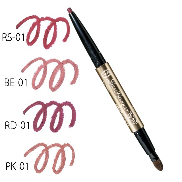 軟らかな描き心地で高発色を保つ。RS-01は気品あるローズ、PK-01は優しいピンク、RD-01は粋なレッド、BE-01はなじみベージュ。