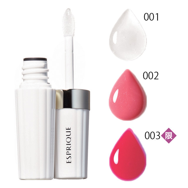 ビタミンE誘導体を配合した、唇ケア効果の高い色づき薬用リップ。001はクリア、002はクリアピンク、003はクリアレッド。医薬部外品。
