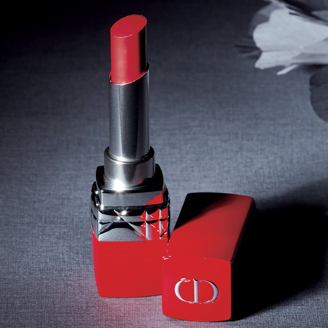 鮮やかな発色とセミマットな仕上がりをキープしつつ、空気のように軽い至福のつけ心地で潤いも与える“欲しいもの全部”的リップ。ウルトラ ディオールを冠する999は、「肌が白く見える」「ほかの赤とは一線を画す」と、これまでにないビビッドな色と質感に拍手。
