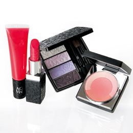 (右)ブレンド ブラッシュ、(中右)アイシャドウ、(中左)リップ スティック、(左)ルージュ バーム