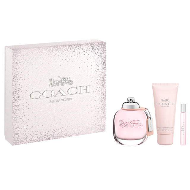 美しいフローラルグリーンの香り「コーチ オードトワレ」を全身で堪能できるフレグランス、パールスプレー、ボディローションをセット。フレッシュなペアーの香りから、ホワイトアルバローズのエレガントな香り、センシュアルなシダーウッドへと続く、コントラストにあふれた香りの移り変わりが魅力。華やかなフレグランスをまとって、自信あふれるホリデーシーズンを過ごして!