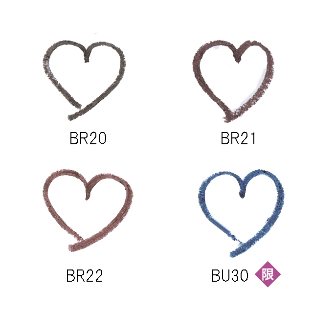 とろけるように軟らかい極細芯で、肌負担なくくっきり描ける。BR22はボルドーブラウン、BU30はネイビーブラック。