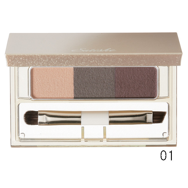 保湿成分配合でしっとり密着し、粉とびしにくい設計に。ライトベージュ、オリーブブラウン、ダークブラウンの3色で自然な眉を描いて。