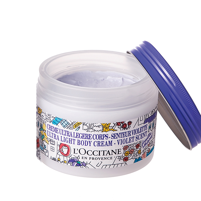 脂肪分やビタミン類を豊富に含むシアバターを共通配合。淡雪のようなテクスチャーがみずみずしくのび、角層に潤いを届けるボディクリーム。スミレ色のテクスチャー&香りで幸せな気持ちに♪