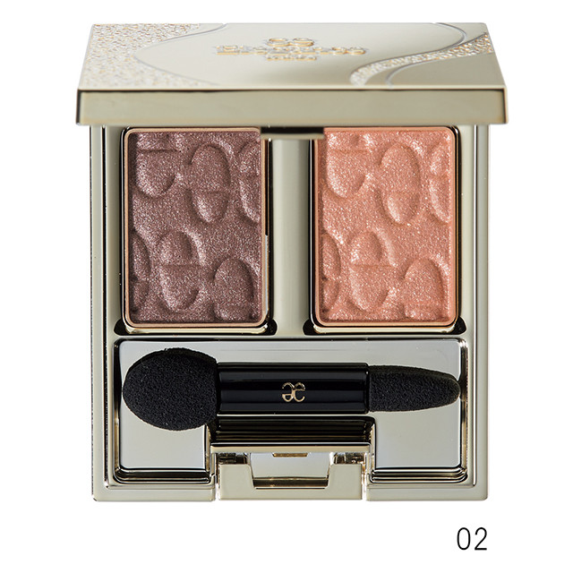 微細パールが艶めく魅惑的なアイメイクがテク不要で完成。02はアーモンド×キャラメル色、07は華やかなレッドブラウン×ピンクベージュ。立体感を演出しながら微細なパールで上品な艶めきをプラス。