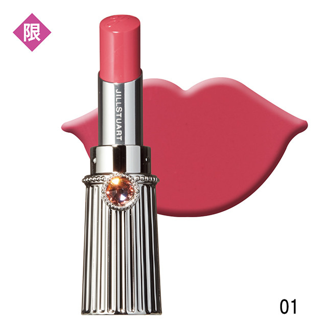 軽やかタッチの口紅は、クリアな発色で唇を引き立てる。01はフェミニンなノンパールのローズ、03はキュートなきらめきピンク。