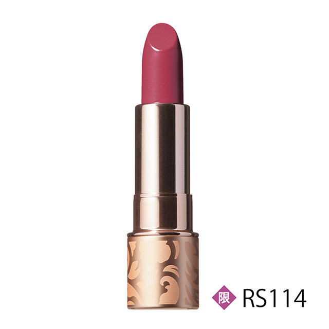 たっぷりの美容成分で唇に潤いを届けながら、リフトアップフィルムが縦ジワを一掃。RS114は透明感を引き立てる華やかなローズ。