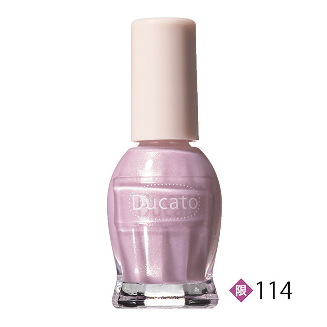 速乾性が高く、重ねてもムラになりにくい。113は紫がかったホワイトに、偏光パールと大粒のラメをミックスした万能カラー。