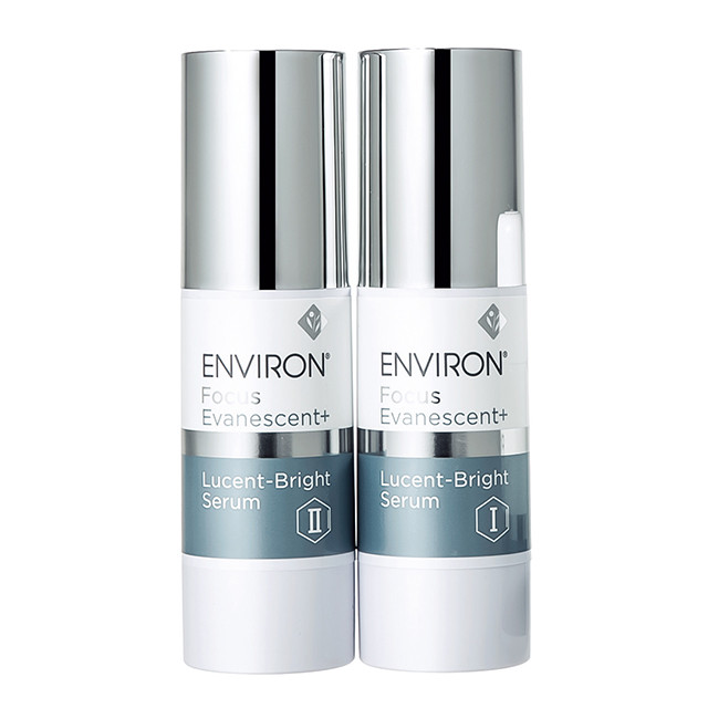 多方面から気になる部分に集中的にアプローチし輝く透明感のある肌へ導く。2本は同量を混ぜて使用するセラムタイプ。