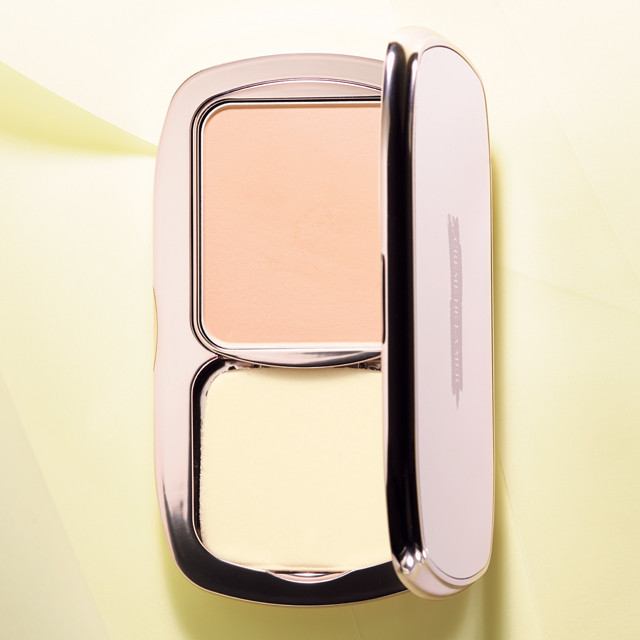 軽やかな微細パウダーがクリームのように肌に溶け込んでフィット。外的刺激から保護しながら、潤いに満ちたフレッシュな肌印象へと導く。「2面のスポンジを使い分けるとカバー力が調整できます」(PR 木村あゆみさん)