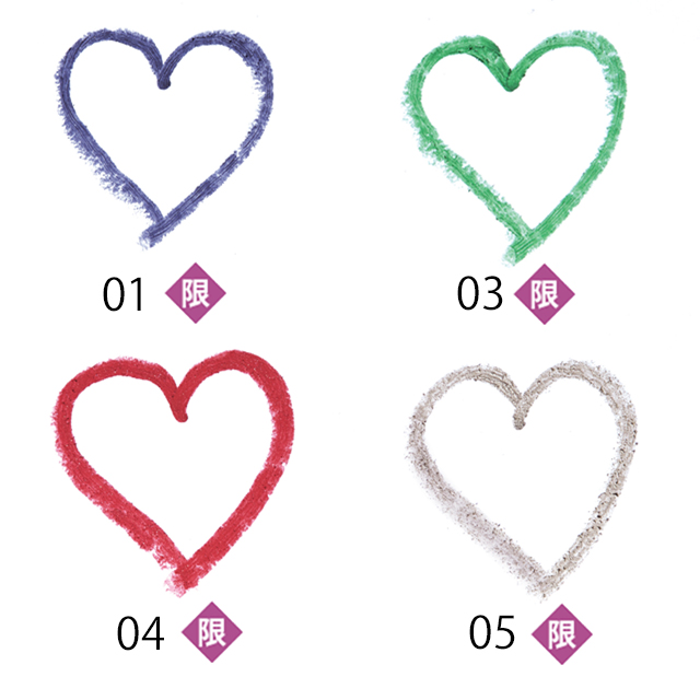 アイシャドウにもアイラインにもなる柔らかなクレヨンタイプ。02はクールなスカイブルー、05は輝きを放つ透け感のあるシルバー。