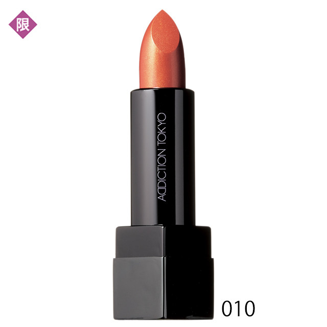 体温でとろけるワックスベースで、なめらかなつけ心地。010はゴールドパールがぎっしり詰まったダークオレンジ。