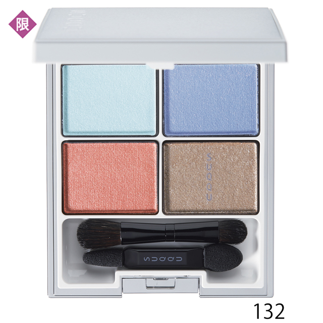 どんな肌色にも浮かず、サマーメイクが楽しめるアイパレット。右下のブラウンはライナーとしても使える引き締めカラー。