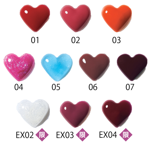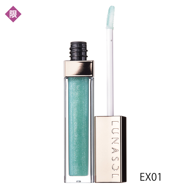 ジェルオイルがツヤ膜を形成し、透明感のあるカラーがピュアに発色。7種の植物オイルで潤いケア効果も。EX01はラメ入りのエメラルド。