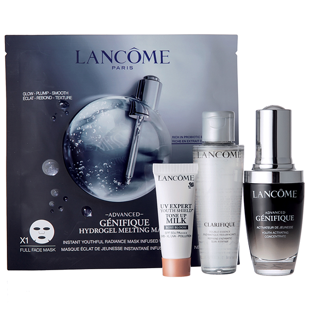 発酵美容液「ジェニフィック アドバンスト N」の30mlor50mlを選ぶと、化粧水や日焼け止め用乳液(各ミニサイズ)、シートマスク(1枚)がついてくるキット。美肌菌のバランスを整えることで、肌本来のもつ“美しくなろうとする力”を呼び覚ます。
