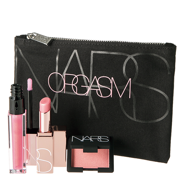 どんな肌トーンにも映え、世界中で多くのファンに愛されている“オーガズム”シェードのアイテム3品とポーチがセット。内容は、ゴールドパールが表情を華やかに彩るチーク(ミニサイズ)と、シアーな色づきのリップバーム&オイル状ティントリップ(各現品)。