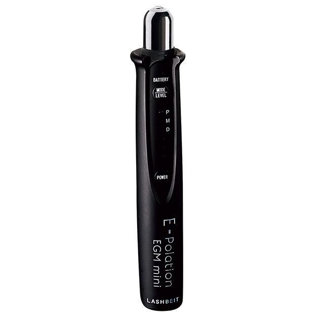 右側はトウモロコシ由来成分など天然由来成分100%、無添加処方のまつげ用美容液。発毛促進因子の“FGF-7”が毛母細胞の増殖・分裂を促すことで、健康的なまつげを育む。左側の導入マシンを併用すれば、有用成分を確実&素早く真皮層まで届けることが可能に。