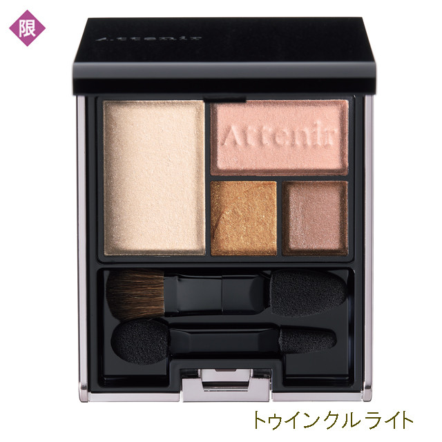 下段中央のリフトアップカラーがアクセントとなり、目元を引き上げる。さまざまなトーンのブラウンが優しい眼差しを生む。