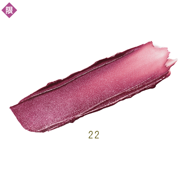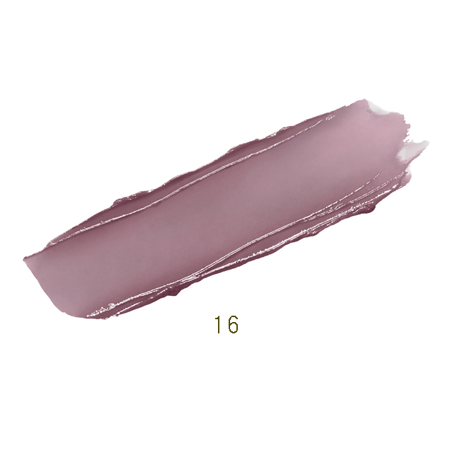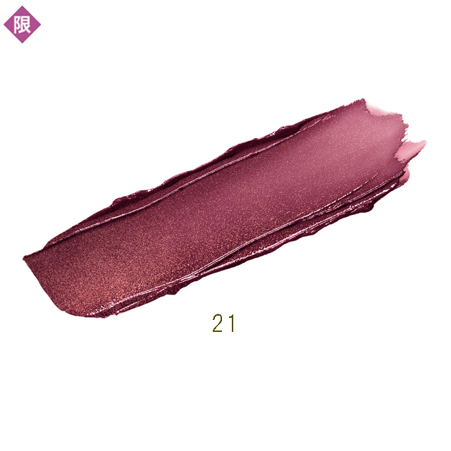 唇のpHに反応し発色。23はゴールドパール入りのローズ、16はベリー系に変わるブラック、21は多色パール入りのブラック。