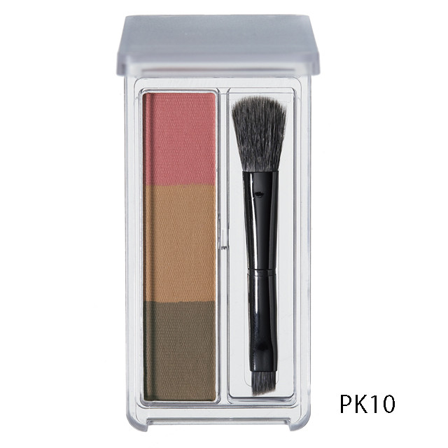 下2色のブラウンでふんわり立体眉に。最後にいちばん上のニュアンスカラーを重ねると、こなれた印象♪ PK10はピンク系ブラウン。