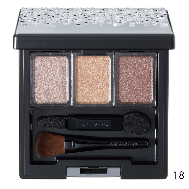 3色を重ねてできる光と影のグラデーションで、目元を美しく彩って。18はゴールドが輝くブラウン系。17はシルバー系。