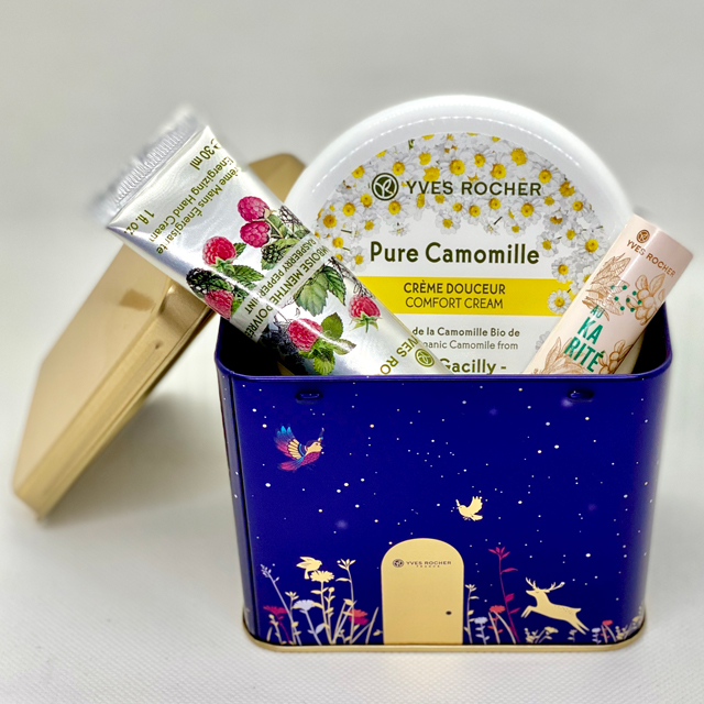 肌を柔らかくしっとりと潤す、万能保湿クリームを堪能できるコフレが登場。カモミール抽出エキスを配合し、クリーミーなのにベタつかないもちもち肌に。さらに、高保湿リップクリームと、ラズベリー&ペパーミントが爽やかなハンドクリームもイン。限定の缶ケースにセットされているので、プレゼントにもおすすめです。